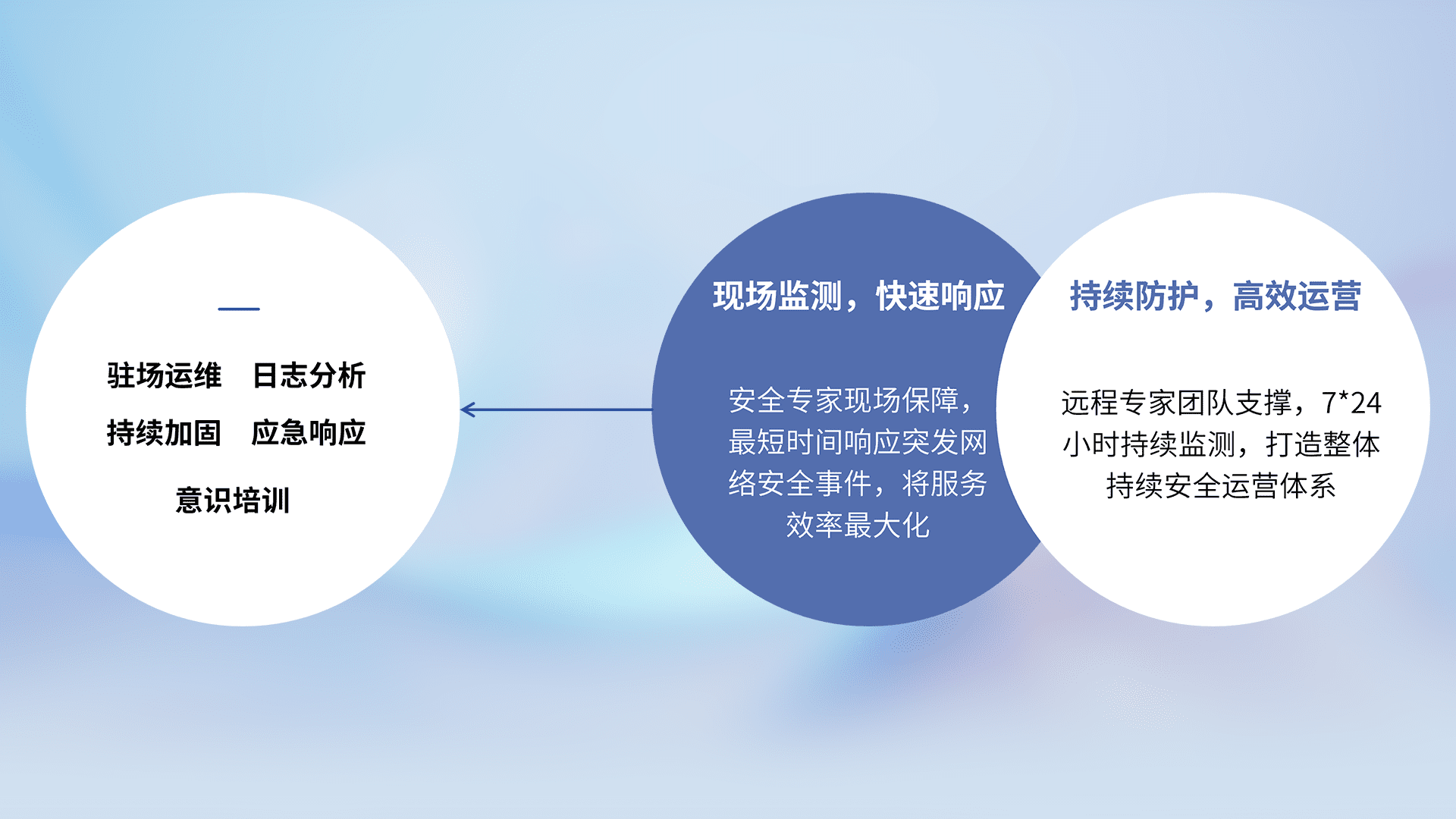 7X24小时持续监测安全事件,保持安全策略有效性,降低资产脆弱性风险,,精准拦截黑客攻击,,减少被黑客利用的机会,,第一时间遏制,,,,降低损失。。。